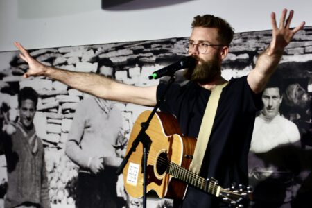 Der Liedermacher und Kabarettist Sven Garrecht stellte an diesem Abend sein Programm “wenn nicht jetzt wann sonst” vor. Grandios und mit markanter Stimme trug der Poet und Komponist seine Lieder am E-Piano Keyboard vor, das die Musikschule Mark Koll kurz vor der Veranstaltung noch schnell zur Verfügung stellte. Die Begeisterung des Publikums war groß, denn Sven Garrechts Lieder und Gedichte sind gespickt durch kluge Beobachtungen, mit einer ordentlichen Portion Selbstironie und total überraschenden Pointen. Kein bisschen Langeweile!